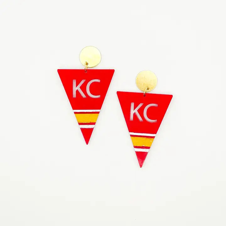 Cheer on your favorite Kansas City sports teams with our KC Red Pennant Earrings! Made from acrylic and featuring gold plated nickel free posts, these earrings are a fun and lightweight addition to any game day outfit. (Score!)